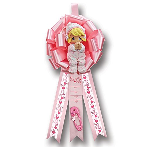 Studio : Precious Moments Publisher : Precious Moments Binding : Health and Beauty Product Description Any new mom would love this Precious Moments Baby Announcement Ribbon . It can be placed on a front door or anywhere you want to announce the good news ( Please note - it's not water resistant and must be place in a dry area) it includes a removable precious moments Baby Pink girl doll, a card to fill out with baby's birth information, two different types of light pink ribbons (one with baby girl written on it) and a keepsake baby pin for mom to keep. The Precious Moments Girl doll prays Now I Lay Me Down To Sleep. 0