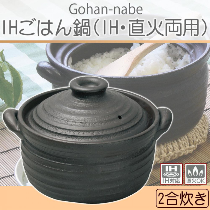 直火はもちろん電磁調理器でもごはんが炊けるスグレモノ。2合炊き、二重蓋、水加減ライン付、外底加工タイプです。 |