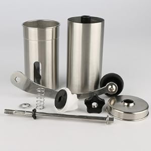 그라인더 / 세라믹 뚜껑 / 스테인레스 받고 용기 / 스테인레스 본체 / 스텐레스 조절 나사 / PP (내열 온도 120 ℃), 샤프트 / 스테인레스 핸들 / 철.