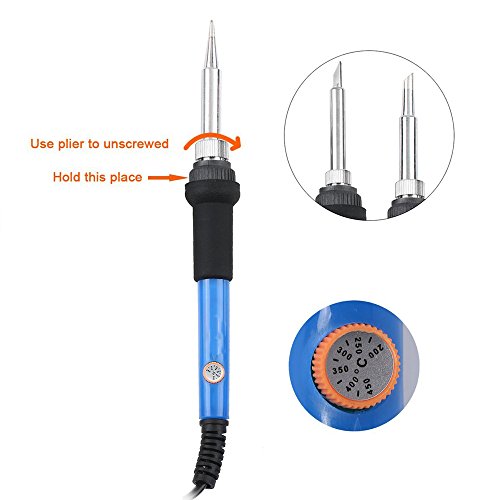 - Adjustable Temperature & Heat up Fast: 60W 110V soldering iron adopts ceramic heater core which makes Heat up fast and efficiently. thermostat range 200 °C-450 °C with high accuracy and stability