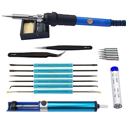 - Perfect Kit for Repair Work: Comes with many accessories including one soldering iron, one soldering iron stand, one solder sucker, 5PCS different Soldering Iron Tips, one lead-free solder wire, and one anti-static tweezer