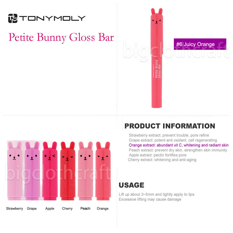 #7 Juicy Orange Tonymoly Tony Moly Petite Bunny Lip Gloss Lipstick 2g