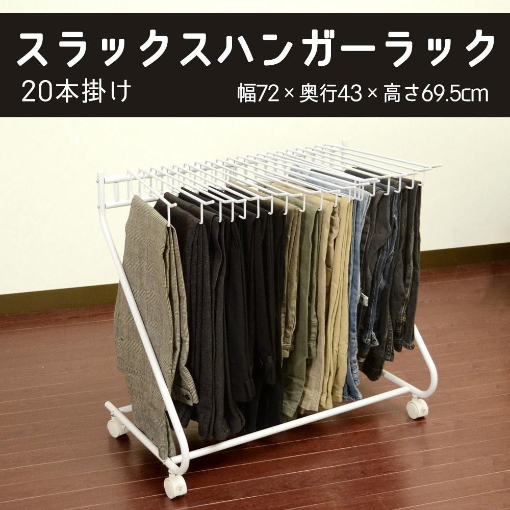 | これ1つでスラックスが20本掛けられます。ハンガーは取り外しができるので、スラックスを掛けるのも簡単です。また本体の四隅には4つのキャスターが付いているので、移動もらくちん♪掃除や模様替えの時に、すぐ移動できるので便利です。 |