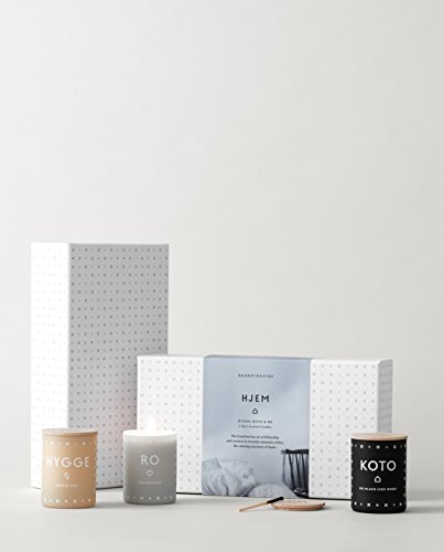 Studio : SKANDINAVISK Publisher : SKANDINAVISK Product Description The Scandinavian art of fellowship and cosiness in everyday moments within the calming sanctuary of home. Combining 3 of our most popular living-oriented fragrances in a muted graphic display. HYGGE: tea, baked strawberry cake, rose petals and wild mint. KOTO: delicate notes of Baltic amber and jasmine with exotic mandarin and vanilla. RO: symphony of fresh grass, crumpled leaves and ambered woods Painted glass votives with a blend of perfume and vegetable wax with 100% cotton wicks and engraved beechwood lids. Designed in Denmark, assembled in France 0