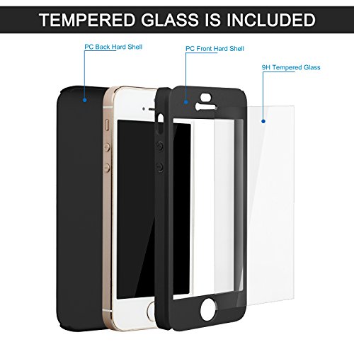 -. Title : iPhone 5S Case, iPhone 5 Case, iPhone SE Case, IN 360 Full Body Protection Hard Slim Case with Tempered Glass Screen Protector for Apple iPhone 5 5S SE (4.0-inch) - Black