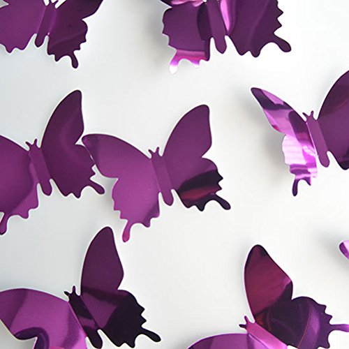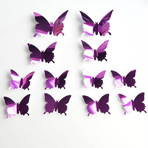 WINOMO 12pcs 3D Mirror Butterfly Removable Mural Stickers Wall Fridge Stickers for Home Room Decoration (Purple)