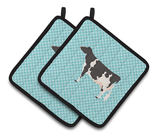 Caroline's Treasures BB7996PTHD Holstein Cow Blue Check Decorated Pot Holder, 7.5" x 7.5", Multicolor