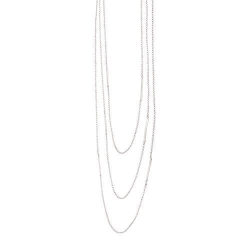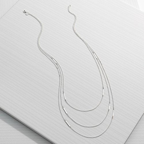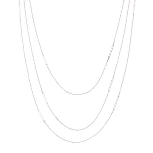 The Genoa Necklace features three sterling silver chains decorated with small, rectangular sterling silver bars toward the bases of the chains, giving you style that's both minimal and on-trend