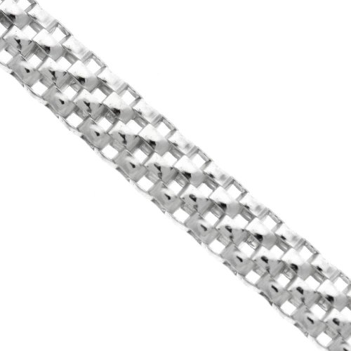 Shiny sterling silver box links are joined together to form this slender 2mm mesh chain. The 20-inch necklace has an eye-catching texture and a smooth, easy curve. It fastens with a lobster-claw clasp.Feature