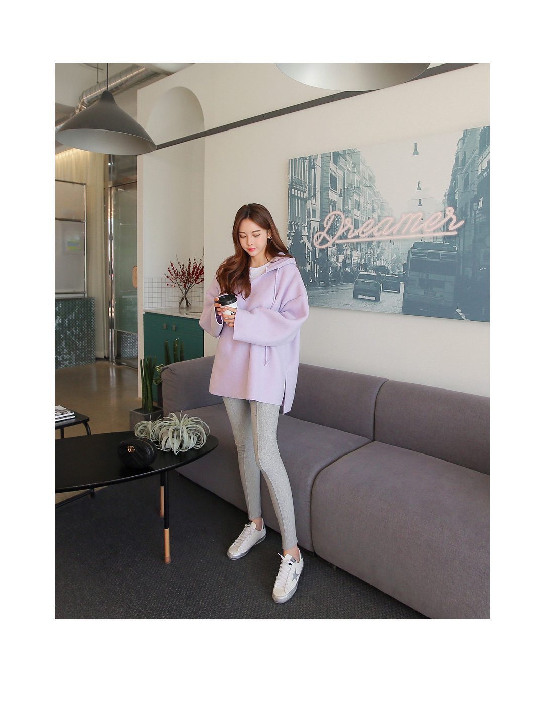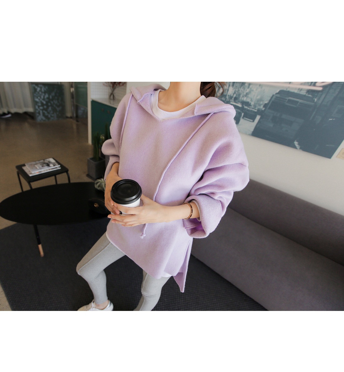 레깅스와 함께 매치하여 편안한 홈웨어로 연출해도 잘 어울리며