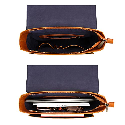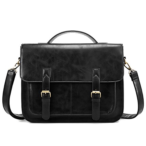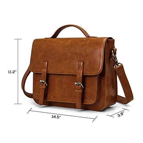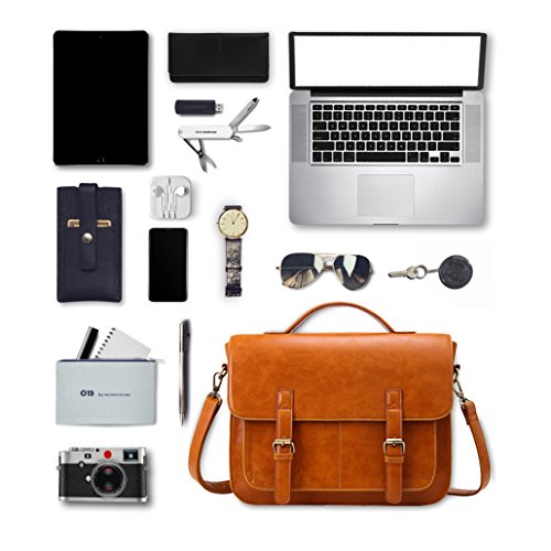 -. Title : ECOSUSI 14 Inch Messenger Bag for Men and Women, Vintage PU Leather Briefcase Computer Laptop Bag Satchel Shoulder Bag
