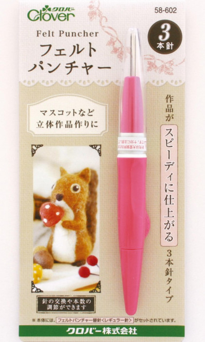 フェルトパンチャーは使いやすさ等にこだわった、羊毛フェルト手芸の専用ツールです。作品がスピーディに仕上がる3本針タイプ。ペン型グリップで手が疲れにくく、針を3本まで付けられるので広い面でも早く仕上がります。針の本数調整・交換も簡単です。 |