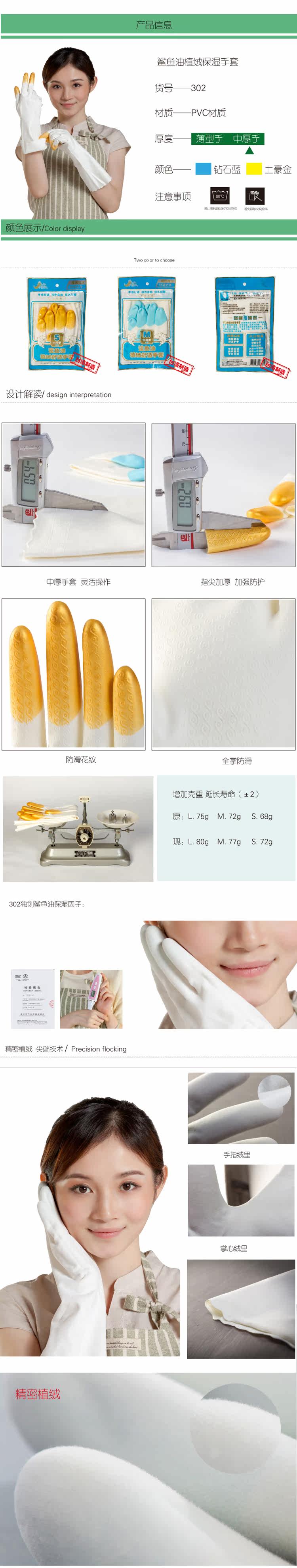 3), 302 flocking moisturizing gloves for money, implanted in velvet shark alkyl essence, moisturizing beauty hand; the other, and the same 301