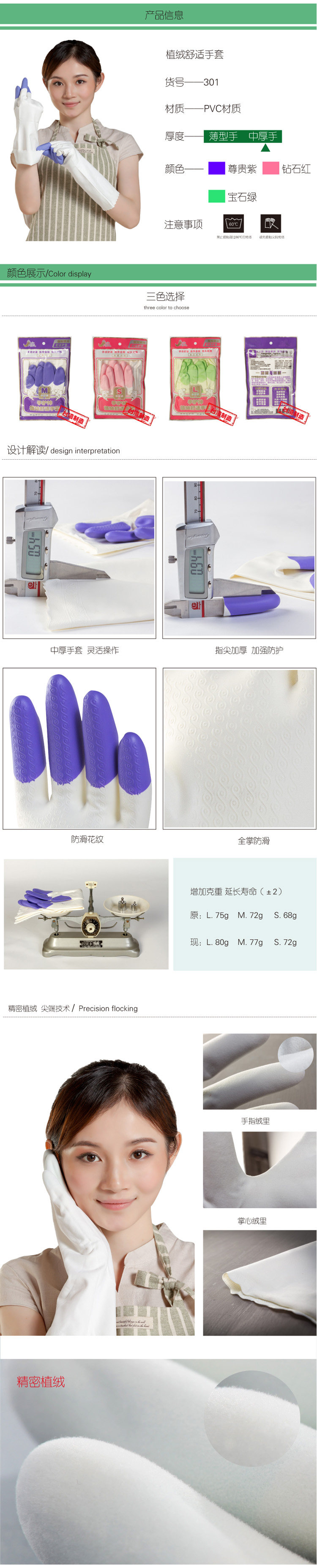 2), 301 gloves flocking models, fine flocking feel more comfortable and can be washed repeatedly without loss, the effect of antifreeze
