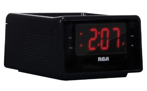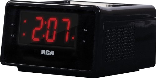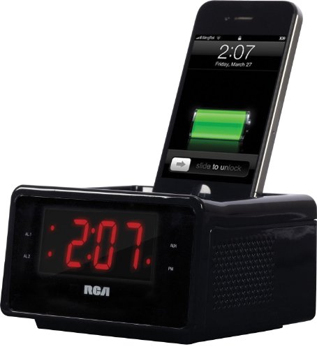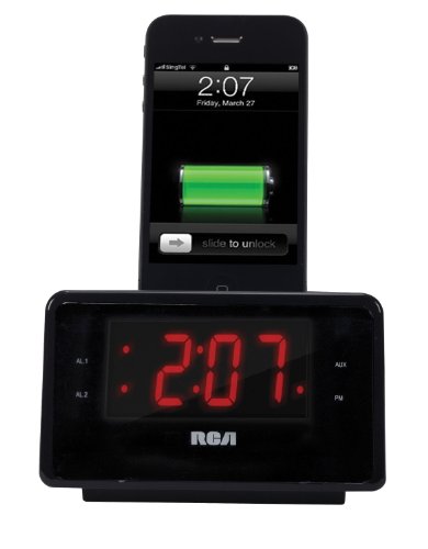 RCA Dual Alarm Clock iPod Charging Station with Digital FM Radio Tuner, Large LED Display, Flexible 30-pin iPod Docking Connector, Sleep Timer, Two Speaker Stereo Sound and a Built-In 3.5mm Auxiliary