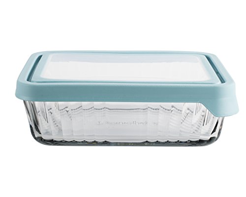 Anchor Hocking TrueSeal Embossed Glass Food Storage Container with Airtight Lid, Mineral Blue, 11 Cup