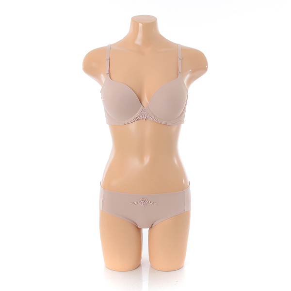 앞중심에 자수를 넣어서 포인트를 주었고 컵선과 날개 모두 숨김봉제로 깔끔하게 처리하여 누디날개의 효과를 주었습니다.