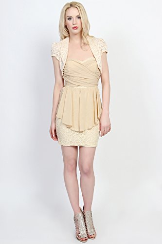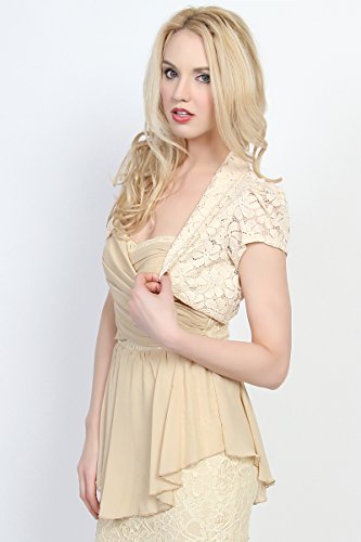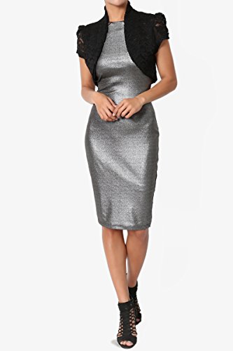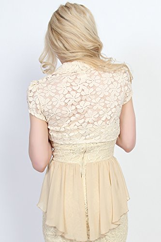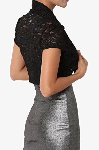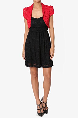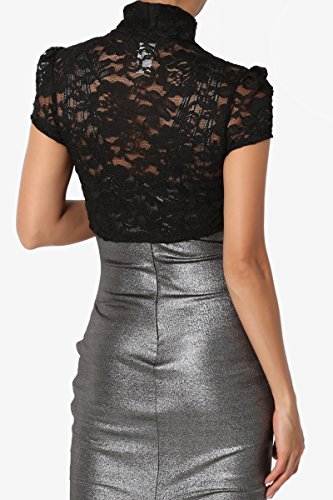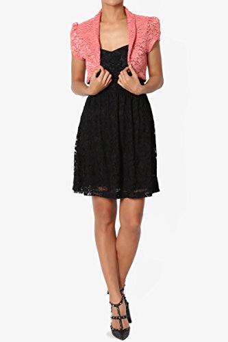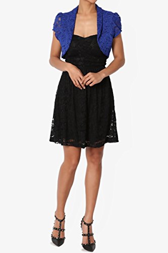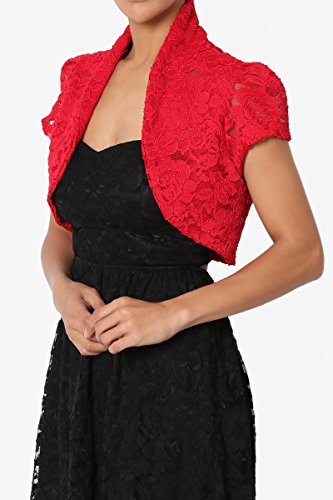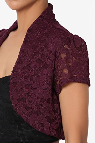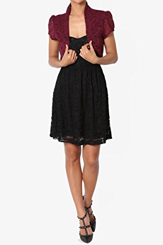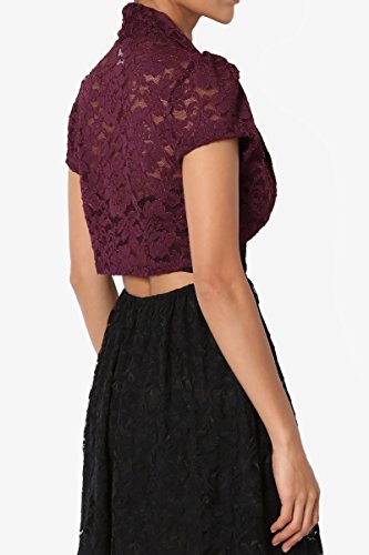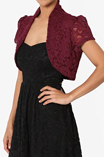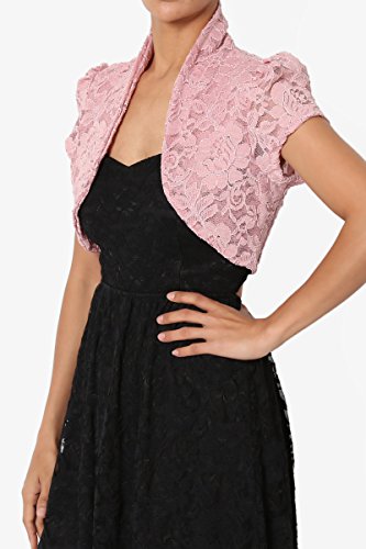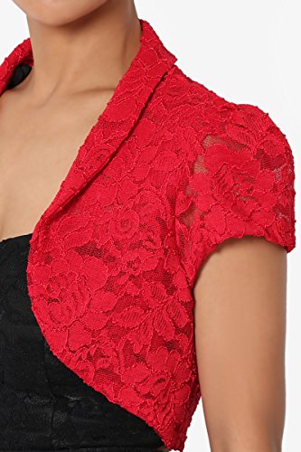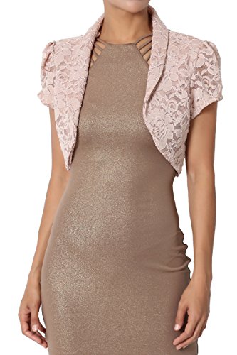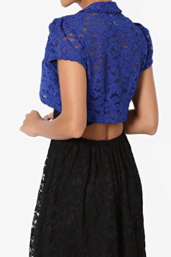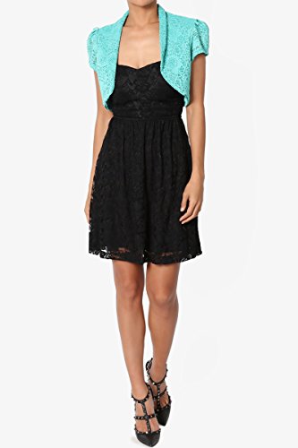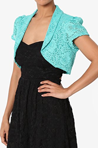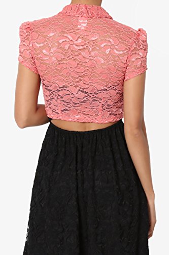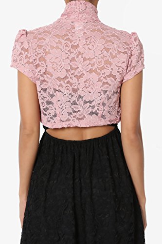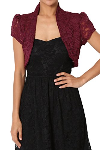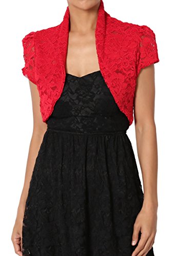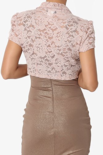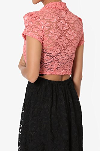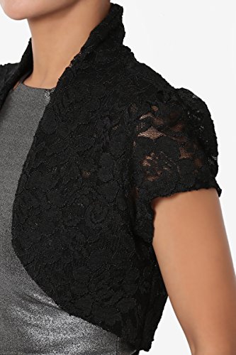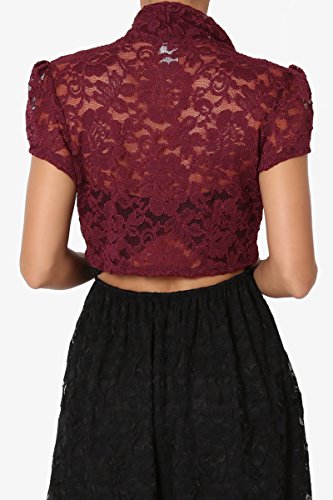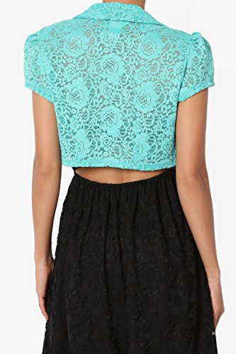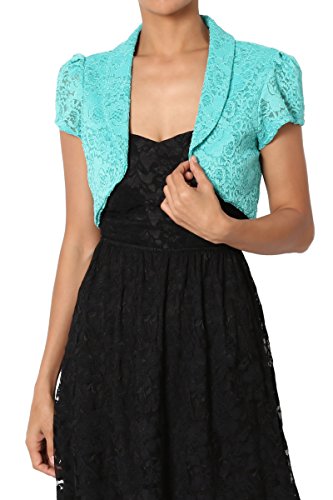 | TheMogan Women's Collar Short Sleeve Lace Shrug Bolero Sheer Crop Dress Jacket |