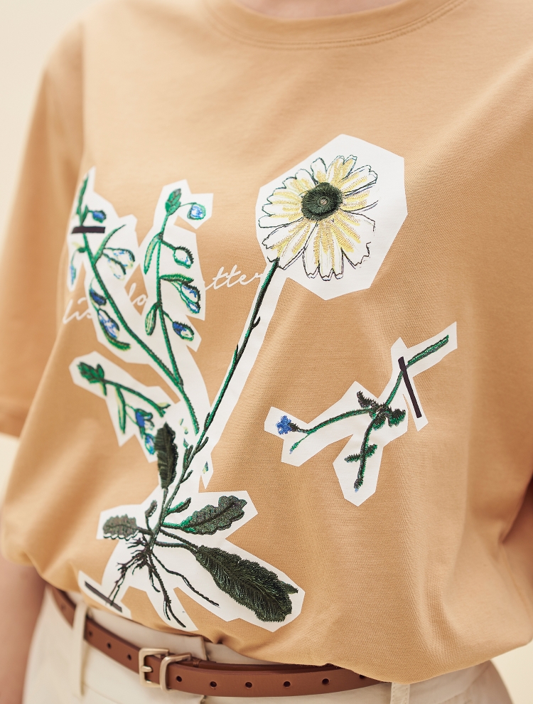 - 전면의 플로럴 프린트에 자수를 얹어 고급스럽게 마무리한 아이템입니다.