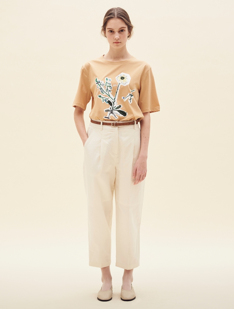- 살짝 루즈한 핏의 반팔 티셔츠로 편하고 여유있게 코디할 수 있는 제품입니다.