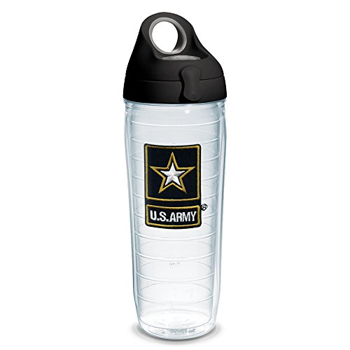 Tervis Us Army star Emblem Water Bottle with black Wb Lid, 24oz, Clear