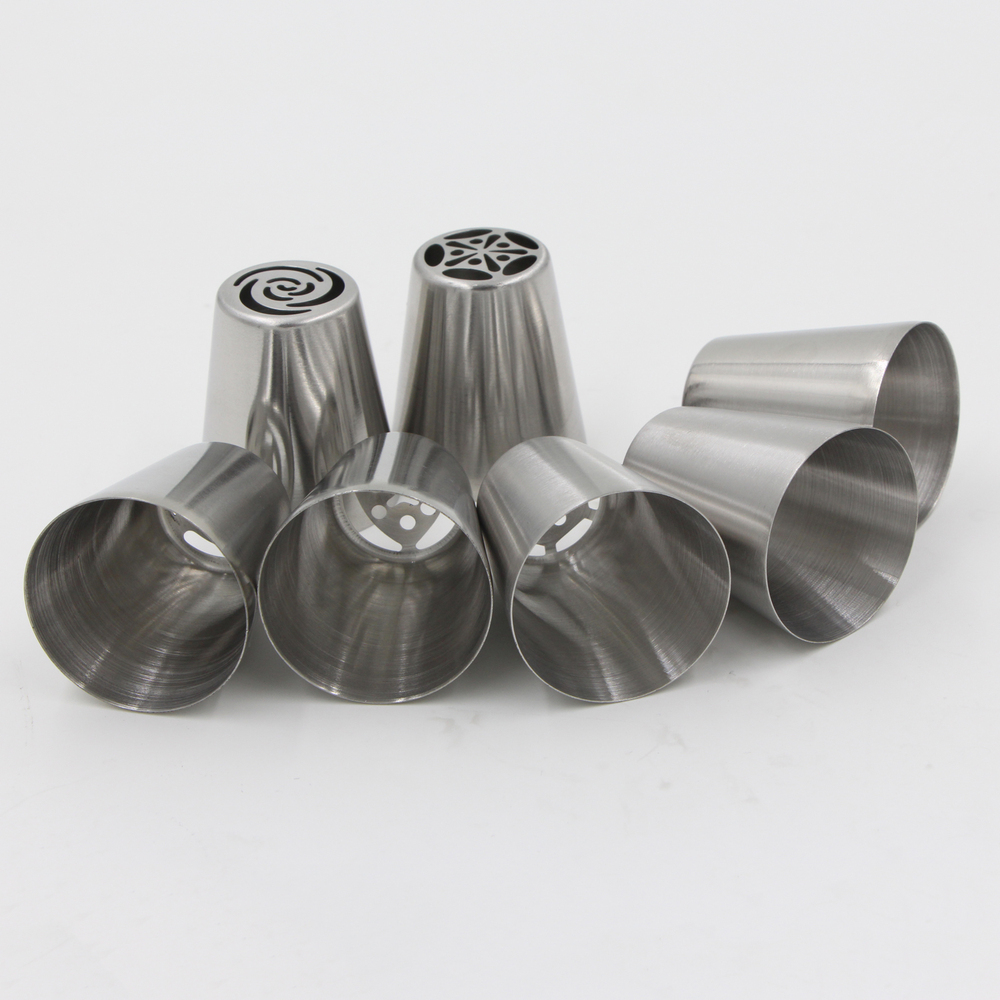 7pcs Stainless Steel Russian Pastry Nozzles Fondant Icing Piping Nozzles Cake Pastry Decorating Tips Rose Tulip Shaped