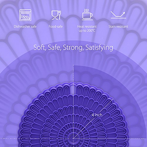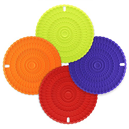Main Features: - No More Nasty Water Stains: The floral-pattern grooves will catch every drip and collect all spillage for you. We hear so often that a nice wooden furniture is ruined because of a few water stains. Don't let such a tragedy happen again. - Intricate Floral Design: Inspired by Johanna Basford's book - Secret Garden, the coaster is beautifully designed like a piece of beautiful flower. Their colors are chosen to be the most eye-catching ones after numerous experiments. Bring them home to color your life. - Food-safe and Durable: Adopting top quality food-safe silicone, the coaster can last for years to come. Being stain resistant and heat resistant up to 200 degrees, it holds cold tea and hot coffee with ease. - Hold Any Normal Cup Size: With the diameter of 4inches, the coaster can hold normal glass size perfectly. It's pretty easy to clean, you just need to rinse it under water or put it in the dishwasher. - Ideal Gift Ready For Wrapping: Set of 6, you can choose a set of one color or color combination. Different color, different atmosphere, choose your favorite to fit your home or send the best to your favorite person. Package Included : 1*Hot Pad Food Safe Place Mat Set of 4 0