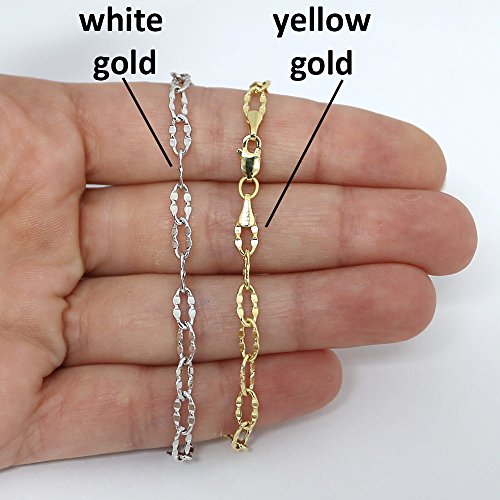 This anklet is made of solid 14k gold (not plated or filled) and stamped "14K." This anklet is a perfect addition to your warm weather wardrobe.