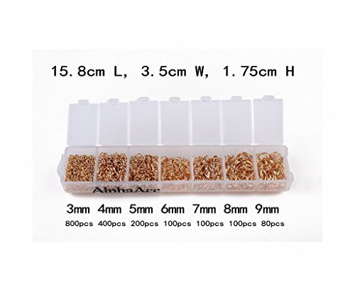 1780 Gold Tone Jump Rings 3mm-8mm with Plastic Container