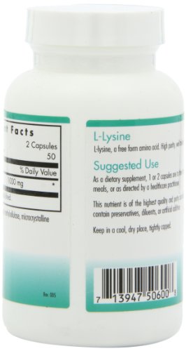 Studio : Nutricology Publisher : Nutricology Binding : Health and Beauty Product Description L-lysine is an essential amino acid that is involved with calcium absorption, collagen formation, and the production of bone tissue. Free form amino acid, high purity, well tolerated. 0