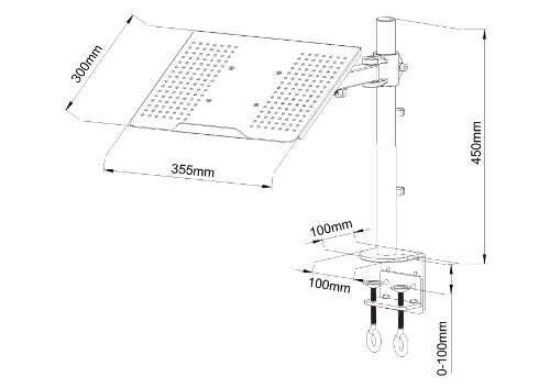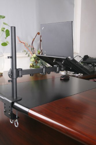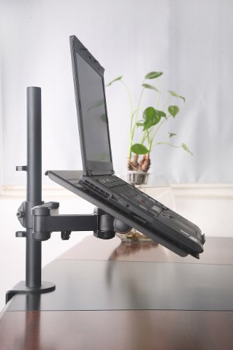 VIVO mount model STAND-V001L for Laptops. The mount is made of high grade steel and aluminum. Fits most Laptops with the mount base measuring 14" x 12". Supports up to 22 lbs. Every joint is able to be tightened, so you can adjust exactly how fluid/stationary you want everything, simply remove the cap on the joint and tighten the bolt underneath. The Mount uses VESA 75 x75 & 100 x 100 mounting holes so you can easily remove the laptop platform and mount a single monitor up to 27" as well.