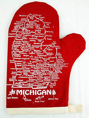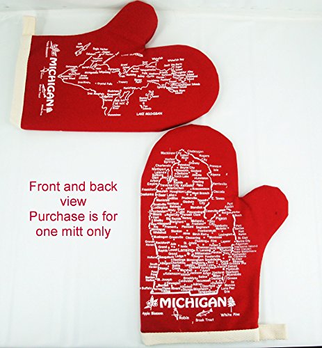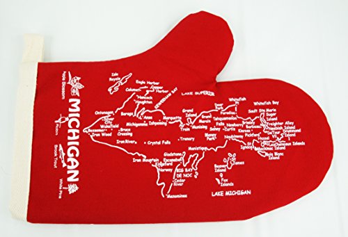 Michigan Oven Mitt-Upper & Lower Peninsula Map-Red-Qty-1