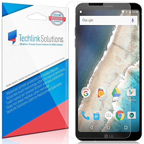 -. Feature : Peace of Mind: TechLink Solutions UltraClear LG G6 screen protectors are backed by a 100% Lifetime Replacement Guarantee / Made from a premium multi-layer UltraClear PET film that not only offers 99.9% HD clarity but also features an oleophobic hard coat designed to resist scratches and prevent fingerP.R.Ints from forming on your screen. / TechLink Solutions UltraClear protectors are easy to install and will never bubble thanks to a unique silicone adhesive layer that uses static to easily adhere to the surface of your device. / Unique laser cut method results in highly accurate designs that feature exact cutouts for precise fitment on your device. / TechLink Solutions UltraClear screen protectors for LG G6 are easy to install and will never bubble thanks to a unique silicone adhesive layer that uses static to easily adhere to the surface of your device