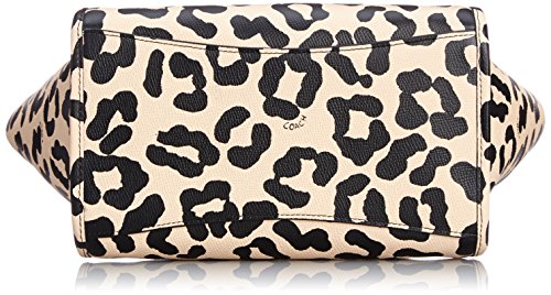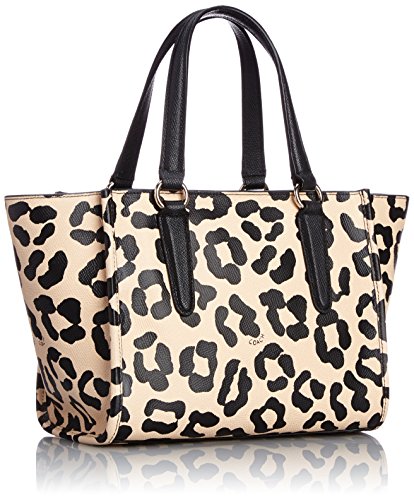 -. Feature : Ocelot print crossgrain leather / Handles with 5" drop / Inside zip, cell phone and multifunction pockets / 13 1/2" (L) x 7 1/4" (H) x 5 1/2" (W) / Zip-top closure, fabric lining