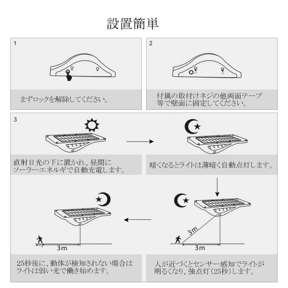 ● (Recommended installation altitude 3 m) Please choose a sunny place as direct sunlight as possible for as long as possible.