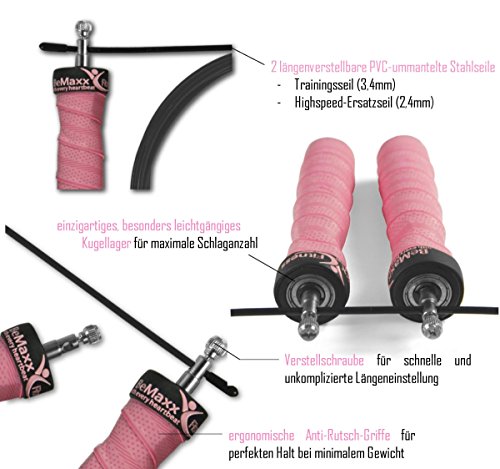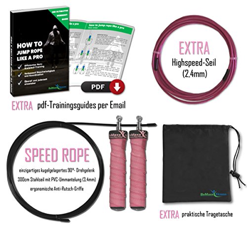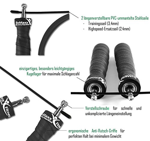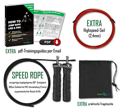 -. Title : Speed Rope SP.R.Ingseil von BeMaxx Fitness + Trainingsguide & Extra Seil - Bestes verstellbares High Speed Stahlseil, Kugellager & Anti-Rutsch Griffe
