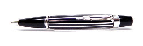 -. Feature : Writing System: Ballpoint pen with twist mechanism / Barrel: Platinum-plated brass (initial production version made of Sterling Silver AG925 instead of brass) with inlaid black lacquer stripes, inlaid with Montblanc emblem / Cap: Platinum-plated brass (initial production version made of Sterling Silver AG925 instead of brass) with inlaid black lacquer stripes, inlaid with Montblanc emblem / Trim: Three platinum-plated rings embossed with the Montblanc brand name / Clip: Platinum-plated clip set with a synthetic crystal gemstone, with individual serial number