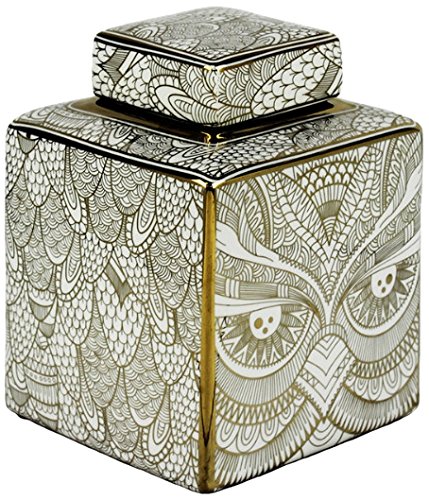 Benzara Ceramic Covered Jar, White/Gold
