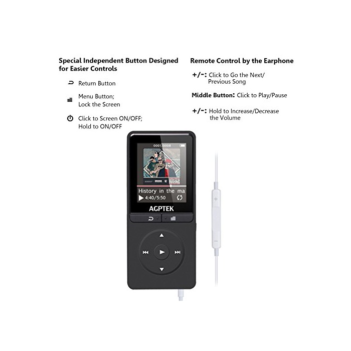 AGPtek AGPtEK A20 MP3플레이어 초경량 재생 최대70시간 8GB 블랙