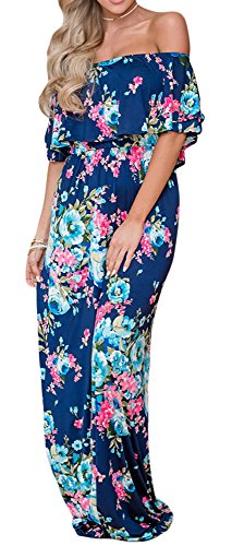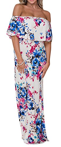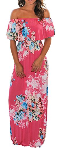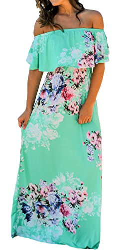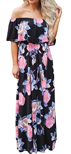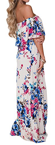 Cfanny Women's Off Shoulder Ruffle Floral Print Casual Maxi Long Boho DressFeature