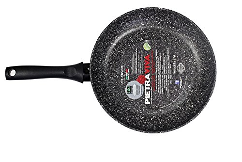 Made in Italy, floral pietra viva, food aluminum body. This 100% food aluminum body provides high energy efficiency and fast heating saves nutritive value. Pietra viva stems from the need to offer products with special shapes, more capacious, with competitive prices but without losing focus on quality. The outer covering is our elegant porcelain enamel with stone effect while the magma-tech inner coating is offered in its basic black version. The new shapes, which can offer greater Capacity, make this line suitable for large families. Pietra viva the oldest material today lives again in new shapes to serve those who love nature in the kitchen. It is in fact frostone that floral draws inspiration for new 4 lines of products, each with different features but all of them with a common denominator: magma-tech non-stick coating. Reinforced with micro mineral particles, this coating is designed for maximum wear resistance, stable and efficient performances, and healthy fat-free cooking, both for intensive use and for quick preparations. With particular attention to the purity of the materials used, magma-tech is therefore ideal for those who love 100% genuine cooking. Stability, strength and reliability, these are the characteristics of an eternal and natural material as the stone, which today returns to the kitchen with a modern and technologically avant-garde design.Feature