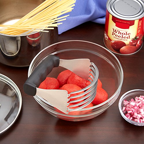 What Makes Ours Better? * HIGH QUALITY STAINLESS STEEL: Not all Stainless Steel is the same and we use High Quality Stainless Steel so you won't have to worry about the blades bending or rusting. * LARGE, NONSLIP SOFT GRIP HANDLE: Absorbs pressure so you can save time and energy. The large handle is comfortable and won't slip even with wet hands. * BETTER RESULTS: Effectively combines wet and dry ingredients. Achieve flakier crusts, perfect crumb toppings and overall better results when you use the Spring Chef Dough Blender. * LIFETIME WARRANTY: We stand behind all of our products and if you are unsatisfied in any way, simply contact us and we will be happy to help. Scroll to the top now and click Add to Cart to begin your favorite kitchen experience. 0 |