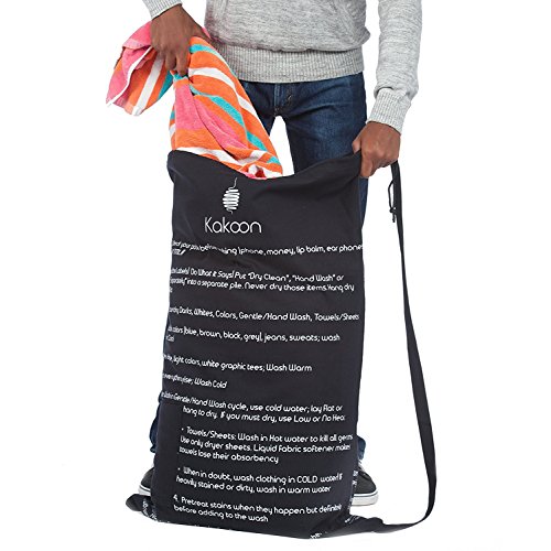 Kakoon Extra-Large Drawstring Laundry Bag with Shoulder Strap, 24-Inch-by-36-Inch