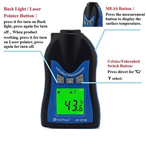 HOLDPEAK 970B Digital Laser IR Infrared Thermometer With Data Hold And Backlight For Cooking And Automotive, Measuring range -22℉-527℉ / -30℃-275℃