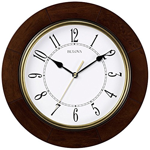 The Bulova Deco 12 in. Wall Clock keeps it classic, clean, and casual with its simple dash carvings and laid-back large numeral display. This wall-mounted clock has a solid hardwood case available in your choice of finish. The clock uses Quartz movement and requires one AA battery (not included) for operation. About Bulova Corporation The realization of a great American dream began in 1875 when Joseph Bulova, a 23-year-old immigrant from Bohemia, opened a small jewelry store on Malden Lane in New York City. This modest enterprise was to evolve into one of today's preeminent watch and clock companies. In 1911, Bulova began manufacturing boudoir and desk clocks, along with fine pocket watches, which he made and sold in unprecedented numbers. During World War I, wristwatches were issued in the military for their greater convenience. Returning veterans brought home the new fashion - and a new market emerged. Bulova timepieces use only the finest materials, precision, craftsmanship, and state-of-the-art technology for enduring quality and performance. At the heart of each Bulova watch is precision accuracy. From the finest quartz movements to alternative technologies such as solar or mechanical energy, each Bulova watch is guaranteed to be accurate to within one minute a year. Every Bulova is anti-magnetic, shock-resistant, and features the company's unique distortion-free and scratch-resistant Dura-Crystal. Only Bulova offers the range of styling and the scope of products to meet everyone's needs. From the sporty Marine Star Collection to diamond watches and heirloom-quality timepieces, Bulova has a watch or clock that will complement your style. 12 diam. x 1.75D in.. Solid hardwood case. Your choice of finish. Quartz movement. Requires 1 AA battery, not included.Feature