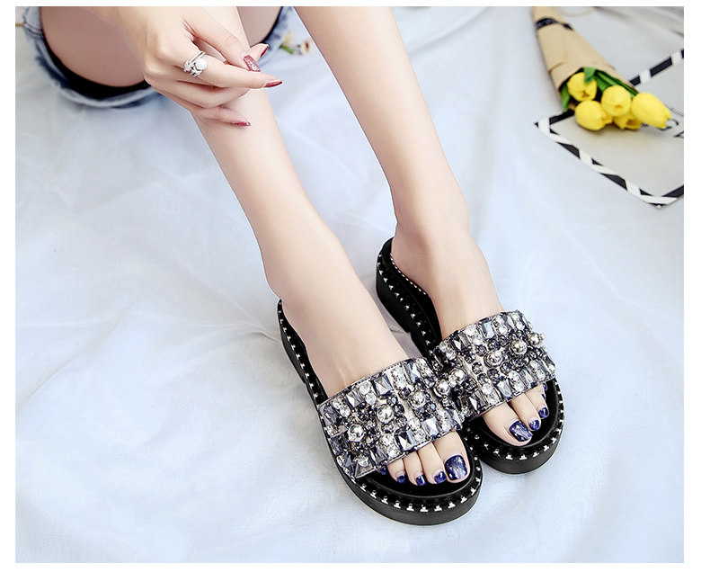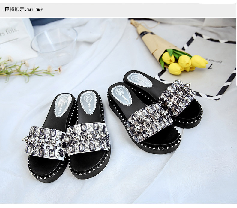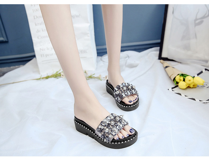 韩版时尚外穿厚底凉拖鞋女夏秋季新款百搭外出一字拖增高女鞋