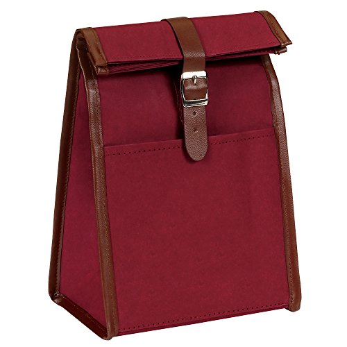 Eunichara Classic Roll Top Lunch Bag Washable Kraft Paper Water, Abrasion and Tear Resistance Thermal Lining with Leather Buckle Closure - Color Maroon