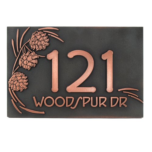 -. Title : Pine Cone Address Plaque 12x8 - Raised Copper Patina Coated