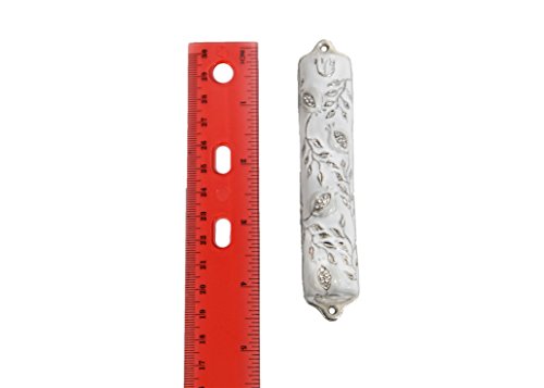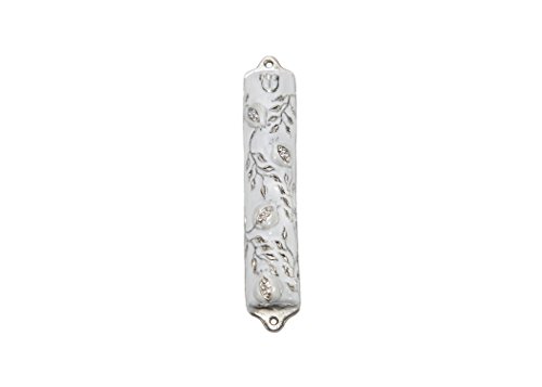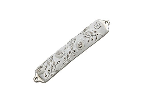 Bless This House, Mezuzah Case - Mezuzah Cover, Pomegranate Tree Design Crafted in Heavy Brass, Jerusalem Judaica, Israel, Door Mezuza Case 4" White Wedding Color