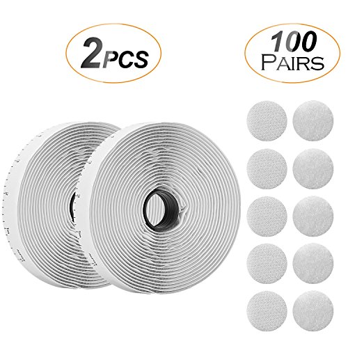 - Perfect Self Adhesive Kit : You will get Hook & Loop Roll and Dots Tape just in 1 order. Hook tape and loop size: Each roll hook tape and loop tape length is 5M/16.5feet, width is 2CM/0.8in, package includes 1 roll hook tape and 1 roll loop tape.100 pcs Hook and 100 pcs Loop Coins Diameter 20mm,Total 200 sets.